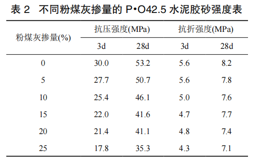 2.2 粉煤灰摻量對 P·O42.5 水泥膠砂強(qiáng)度的影響